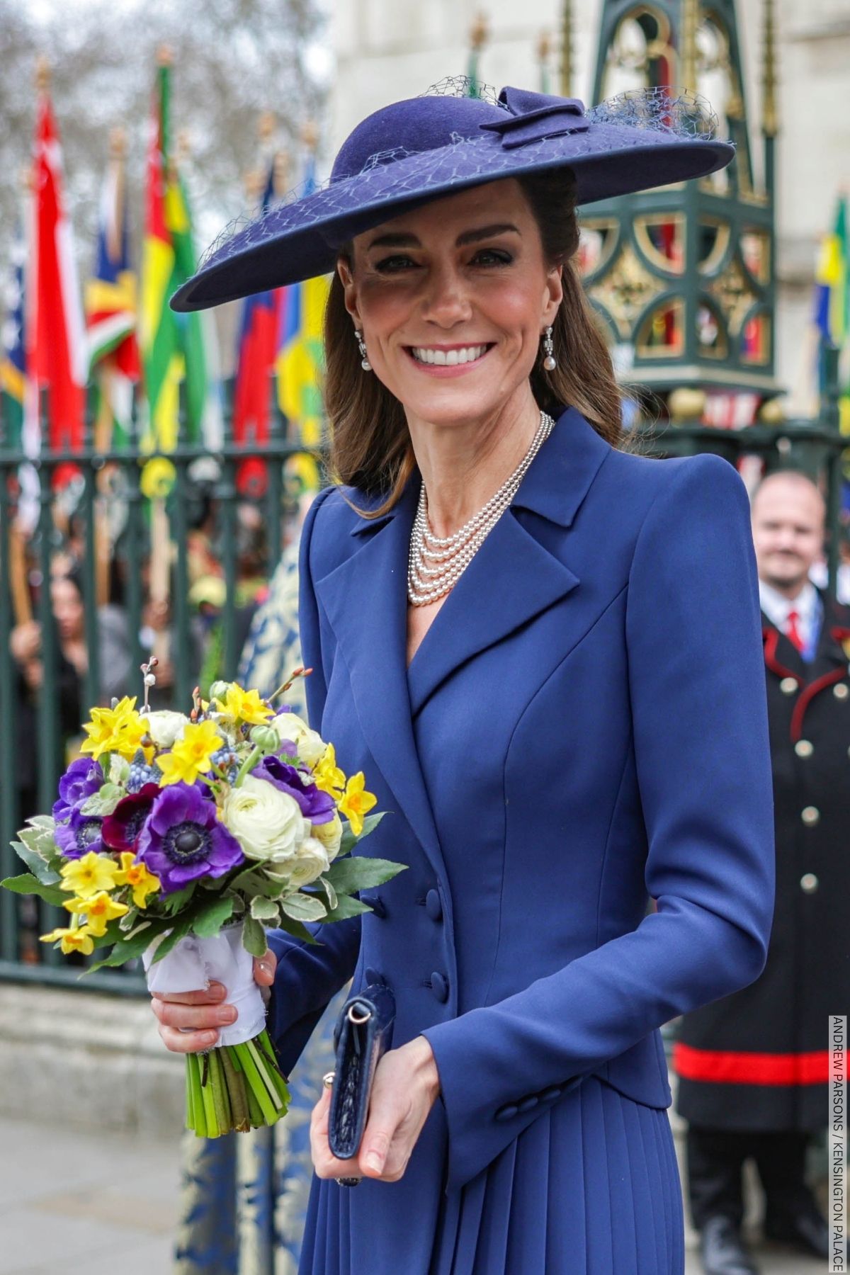 The Princess of Wales returned to a tried-and-true formula for today’s Commonwealth Day Service at Westminster Abbey—monochromatic dressing in a colour featured on the Union flag.