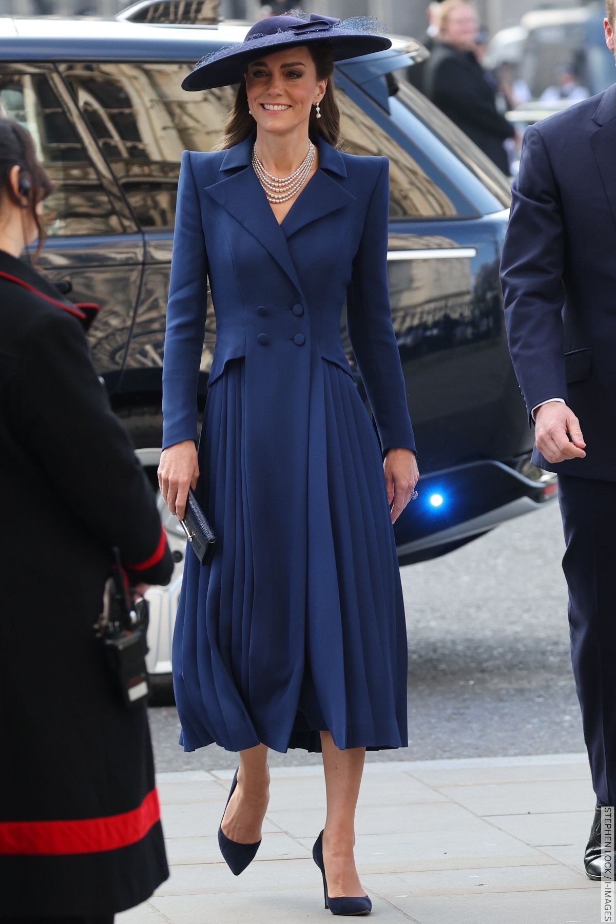 For this year’s service, Kate debuted a pleated coatdress by Catherine Walker, which she paired with elegant pearl jewellery.