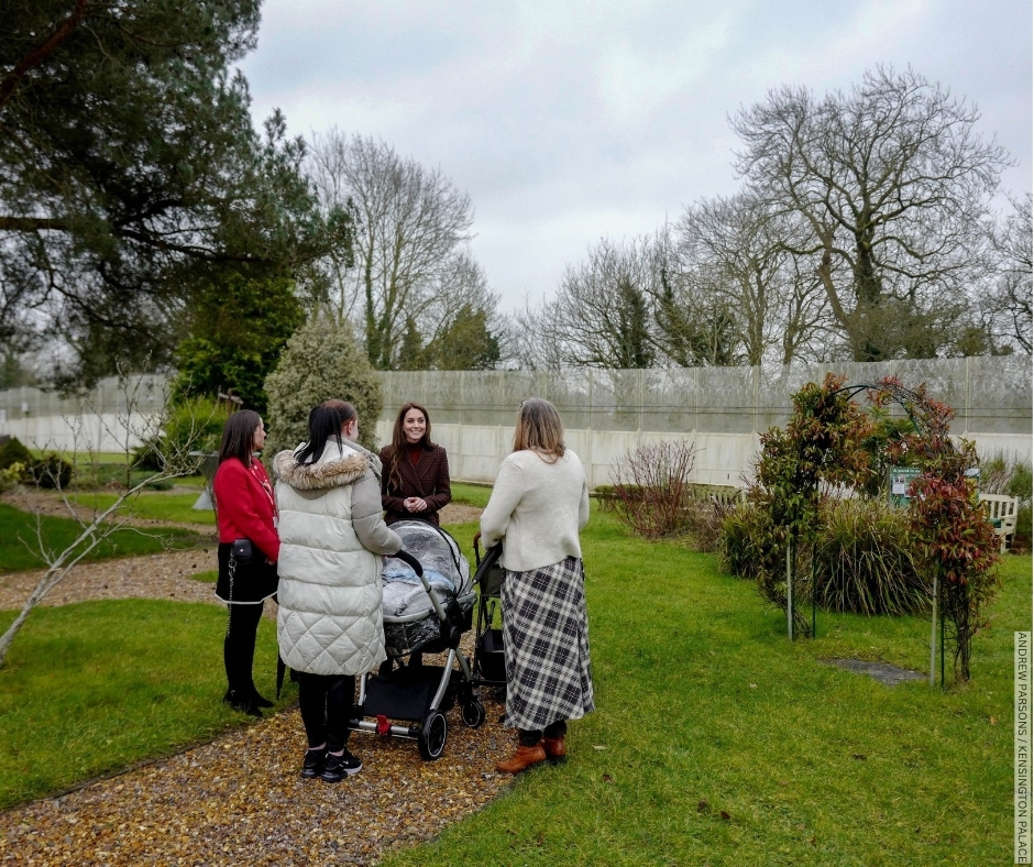 February’s image shows Kate during a visit to HMP Styal. The Princess is pictured outdoors, chatting with mothers from the prison’s mother and baby unit.