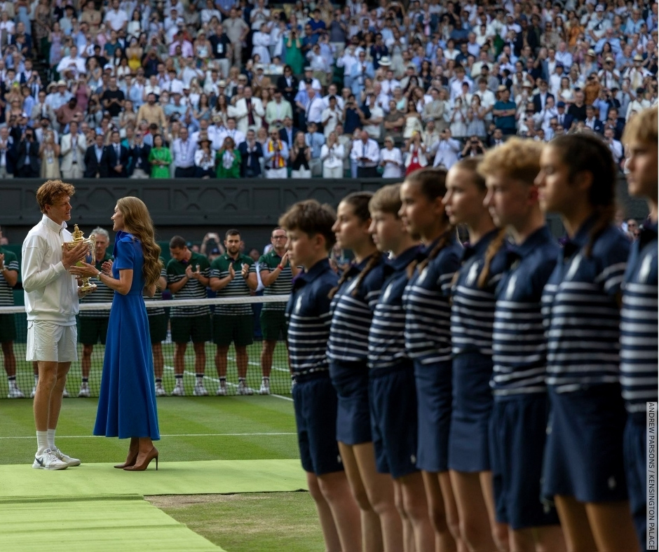 July’s photo shows Kate on Centre Court at Wimbledon, presenting Italian tennis star Jannik Sinner with the men’s singles trophy.