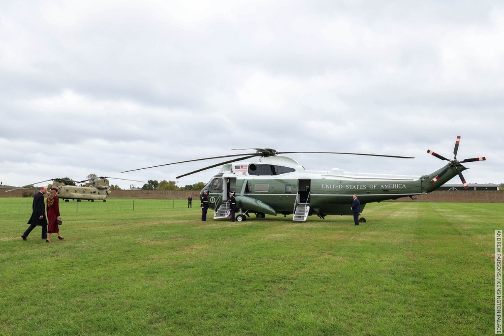 September’s image shows the Prince and Princess walking towards Marine One as US President Donald Trump arrived in Windsor for his second state visit to Britain.