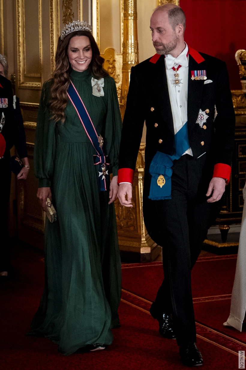 Kate Middleton wore an emerald green gown for Wednesday evening’s State Banquet at Windsor Castle, held in honour of Nigeria’s President Bola Ahmed Tinubu.