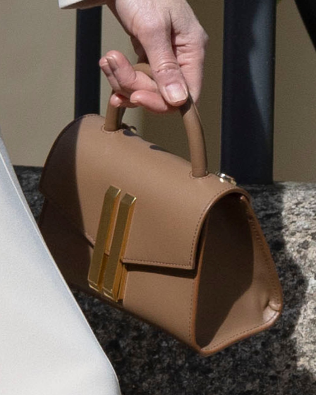 Now to Kate’s handbag—the Princess carried her DeMellier Nano Montreal bag in Deep Toffee Smooth.