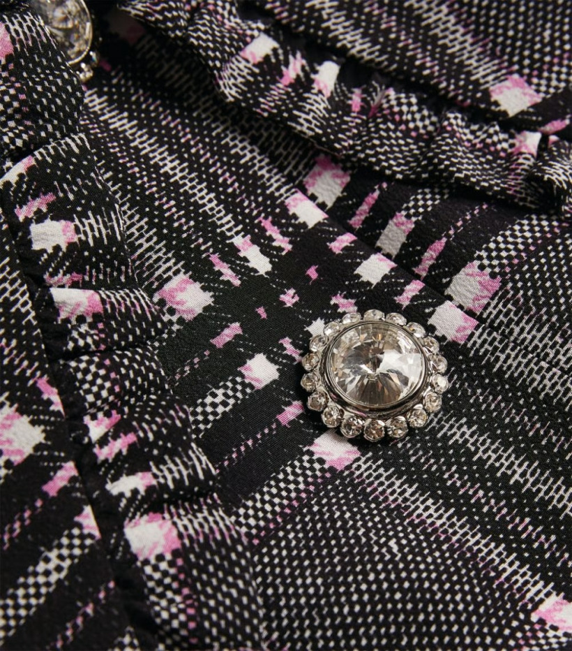 Kate’s dress—by Alexandra Rich—showcased heritage fashion with a fresh twist. The piece featured a contemporary pink, white and black colour palette, an oversized collar, finished with sparkling diamonté buttons.