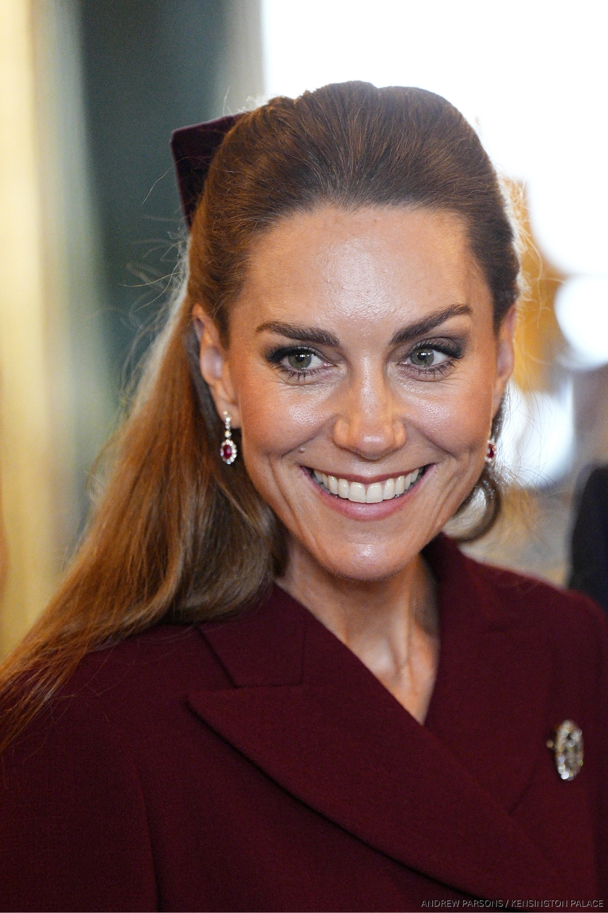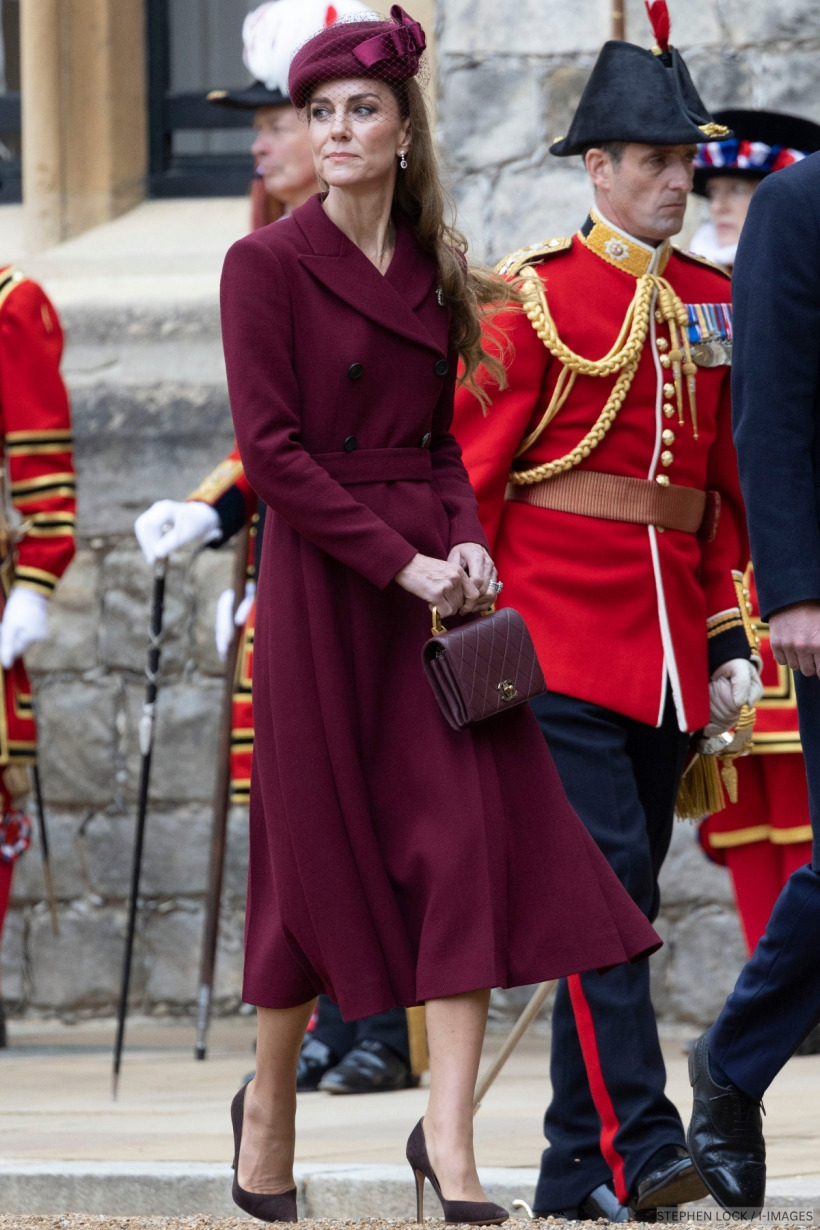 How did she wear this trend? The Princess paired a burgundy coat dress with a hat in the same shade, a darker-toned bag and a pair of brown suede heels.