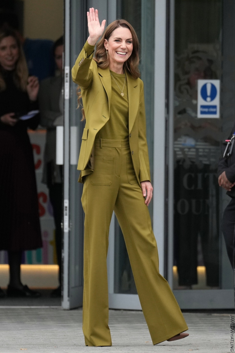 And let’s not forget her recent visit to Northern Ireland. She pulled out two looks that day—and two variations of the colour trend: