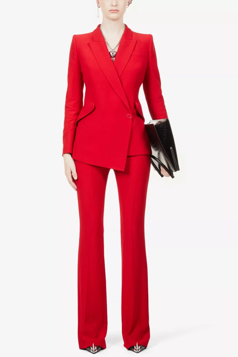 The two-piece suit is from Alexander McQueen.