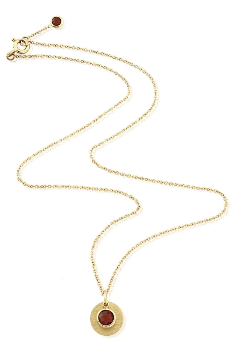 She also wore her Auree Bali January Garnet Birthstone Necklace, a delicate 9ct yellow gold design featuring a bezel-set garnet alongside a polished gold disc.
