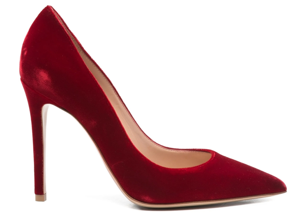 Kate completed the look with pointed-toe stiletto heels, believed to be the Gianvito Rossi 105 style in red velvet.
