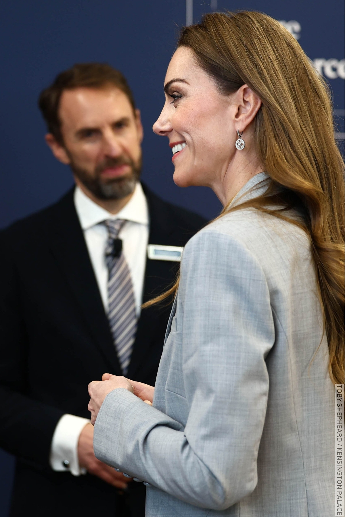 Kate Middleton debuted an elegant grey suit at The Future Workforce Summit this morning.